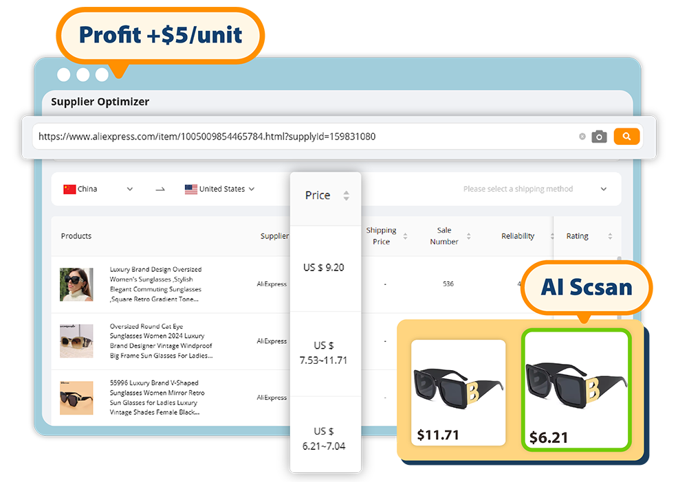 Tools like the DSers Supplier Optimizer use Image Recognition and Big Data to scan the entire marketplace for your exact product. It filters out the noise and presents you with suppliers who sell the same item for cheaper prices with better shipping ratings. This isn't just "searching"; it's intelligent financial optimization.