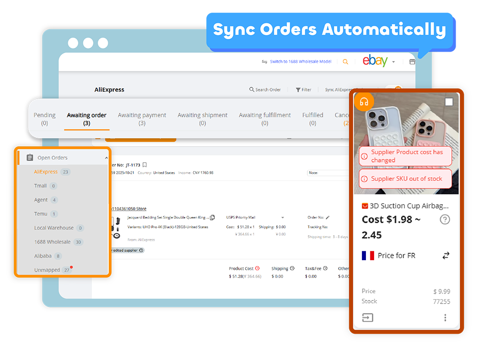 Master eBay dropshipping. Automate orders, sync inventory, and source winning products with one powerful tool.